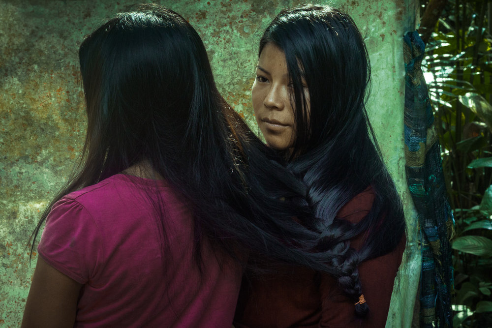 Questo progetto è iniziato nel 2007, un periodo durante il quale mi recavo spesso in una comunità indigena chiamata Sarayaku, nell’Amazzonia ecuadoriana, accompagnando altri fotografi per realizzare un lavoro documentaristico. La comunità di Sarayaku è situata nelle profondità della giungla e può essere raggiunta solo in aereo o in barca, ed è una comunità estremamente importante per l’Ecuador e l’America Latina perché hanno vinto una causa davanti alla Corte Interamericana dei diritti umani contro lo Stato ecuadoriano per aver consentito l’ingresso di imprese petrolifere che hanno svolto esplorazioni e perforazioni per sfruttare il petrolio nel loro territorio, una manovra che viene proibita dalla costituzione. Durante una delle nostre visite siamo arrivati casualmente durante una festa tradizionale che si celebra ogni tre anni e durante la quale gli uomini vanno a caccia nella giungla per una quindicina di giorni, e le donne rimangono nel villaggio. Il fotografo con cui lavoravo andò con i cacciatori mentre a me mi dissero che non potevo accompagnarli perché sono una donna e le donne non vanno a caccia. Quindi mi sono detta “wow, cosa farò qui per 20 giorni?”.