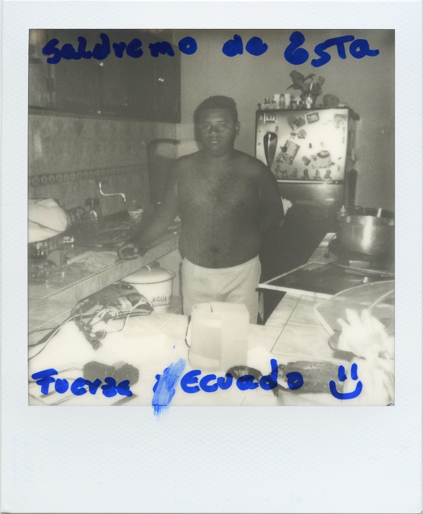 Per il progetto 7.8, che documenta i sopravvissuti al terremoto del 2016 in Ecuador, le persone ritratte sono intervenute sulle loro fotografie. Era un bisogno che avevamo insieme a Misha Vallejo, l’altro fotografo con cui ho collaborato. C’era il bisogno di creare qualcosa mentre tutto intorno a noi era andato distrutto, per cui abbiamo usato le polaroid che sono istantanee, che sono oggettuali, sono qualcosa che può essere toccato. Volevamo che le persone fotografate potessero toccare la materialità dei loro ritratti. Hanno scelto dove volevano essere ritratte e hanno partecipato al processo di generazione dell’immagine direttamente sul posto. Dopodiché hanno descritto con le loro parole cosa stava succedendo, cosa sentivano. Abbiamo scelto questa strada anche per allontanarci dal giornalismo rapido, che copre questo tipo di eventi tragici e drammatici scattando una fotografia veloce che poi diventa una statistica. Volevamo rallentare e cambiare questo processo per renderlo più materiale. E’ nata poi la necessità dell’oggetto e quindi questo progetto è diventato un libro, dove il tattile è molto importante per la storia che viene raccontata.