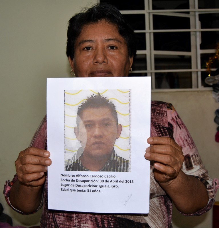 Alfonsa Cecilio Agapito 63 anni, originaria di San Miguel Tecuisiapan, risiede a Iguala e cerca suo figlio, Alfonso Cardoso Cecilio, 31 anni, scomparso il 30 aprile 2013.