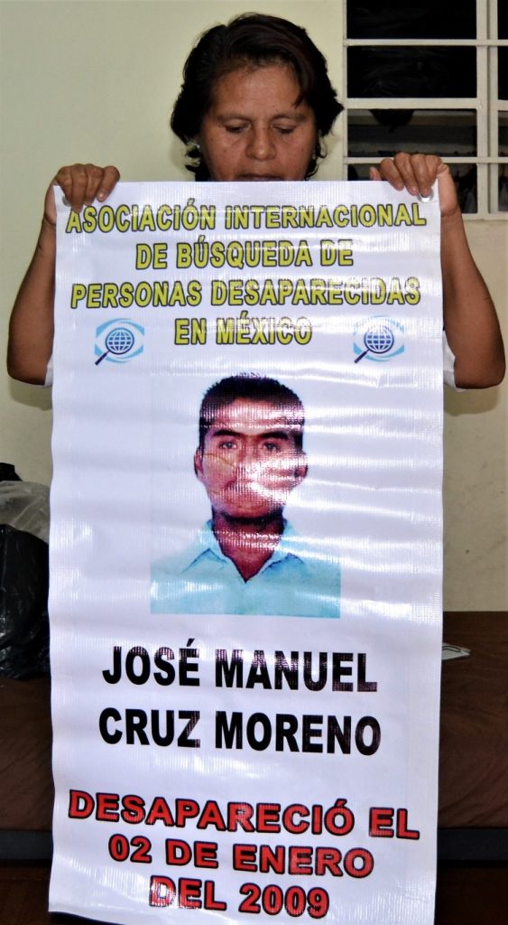 Collettivo. La cosa più importante che ci unisce è andare alla ricerca dei nostri cari. Soprattutto ci sono molti compagni che ancora non hanno trovato il loro familiare. Allora l’obiettivo è continuare a cercare. Io l’ho trovato ma ci sono ancora tutti gli altri. Un’ altra cosa importante è lottare per i nostri diritti. Grazie a Dio il governo ha emanato varie leggi che ci proteggono come vittime, come la General de Victimas (Legge Generale delle Vittime, in vigore dal 2013) e quella di Desaparición Forzada y por Particulares (Sparizione Forzata e Commessa da Privati, previste dalla Legge Generale messicana sulla materia)e in questo senso il governo ci sta dando una mano. Abbiamo perso un familiare e perciò la sua famiglia, sua moglie e le sue figlie, si ritrova senza il suo aiuto. Grazie a queste leggi riceviamo un aiuto alimentare o per l’affitto, questi sono i nostri diritti.
