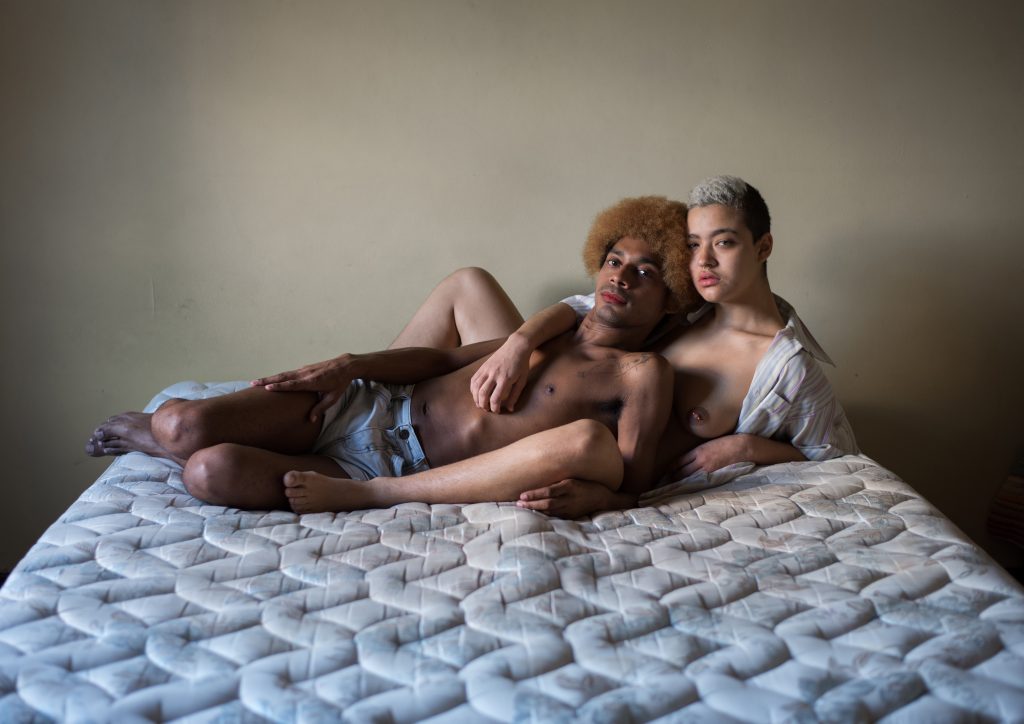 Sì la adoro, il mio sogno è fotografare Linn e Jup do Barrio, le amo! Quando ho iniziato a passare più tempo con persone trans, travestite e non binarie mi sono resa conto che non c’era per forza bisogno della chirurgia per essere donne, o essere trattate e rispettate come tali. I loro corpi senza chirurgia meritano lo stesso rispetto del mio corpo di donna cis. Nel momento in cui dicono di essere donne non hanno bisogno di nient’altro, i loro corpi sono già perfetti, è la società che le vede attraverso delle costruzioni sociali per cui una donna dovrebbe apparire in un determinato modo. Io voglio mostrare che loro sono perfette così come sono, i loro corpi sono perfetti con un pene o senza seno. Se vogliono sottoporsi alla chirurgia non c’è problema ma non ne hanno bisogno. In alcune foto hanno voluto mettersi dei seni, pero in generale ho cercato di mostrare questi corpi senza chirurgia perchè in Brasile (non solo, peró io posso parlare solo per quella che è stata la mia esperienza qui) esiste uno stereotipo molto forte per cui si pensa che le donne travestite debbano avere seni di silicone enormi, e volevo mostrare altre possibilità e altri corpi femminili. Ho cercato di fotografare donne nere, grasse, magre e non focalizzarmi solo su quelle donne con un alto livello di passing [2 ] , volevo fotografare tutti i corpi femminili possibili.