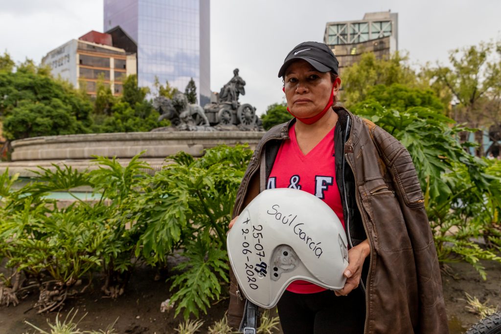 Da novembre 2018 a luglio 2020, Ni Un Repartidor Menos ha documentato la morte di 18 riders a Città del Messico e di altri 44 nei vari Stati del Paese. Per il biennio precedente non esistono dati: i riders morti sul lavoro potrebbero essere molti di più ma restano invisibili. Se le famiglie delle vittime danno il loro consenso, il collettivo installa una bici, un casco o un borsone dipinti di bianco nel punto in cui hanno perso la vita i loro colleghi. Prima di parlare con i ragazzi e le ragazze del collettivo, a quel borsone Verónica voleva dargli fuoco. L’idea di tingerlo di bianco, e incastonarlo nella selva urbana in memoria di Saúl, le è però sembrata giusta. La gente, sostiene, deve rendersi conto che i riders stanno morendo e “che li stanno ammazzando mentre lavorano”.