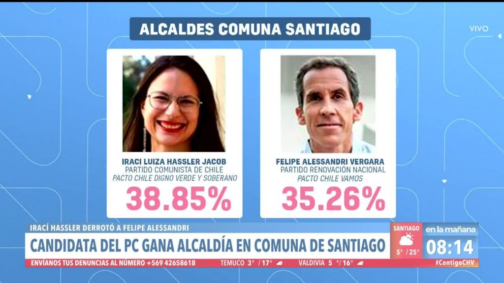 Il PC raddoppia i sindaci da 3 a 6: @danieljadue si conferma a Recoleta e la trentenne @IraciHassler trionfa nel municipio di Santiago contro il candidato di Piñera. Il Frente Amplio ottiene 12 sindaci, 127 consiglieri e @karina_ol va al ballottaggio come governatrice di Santiago.