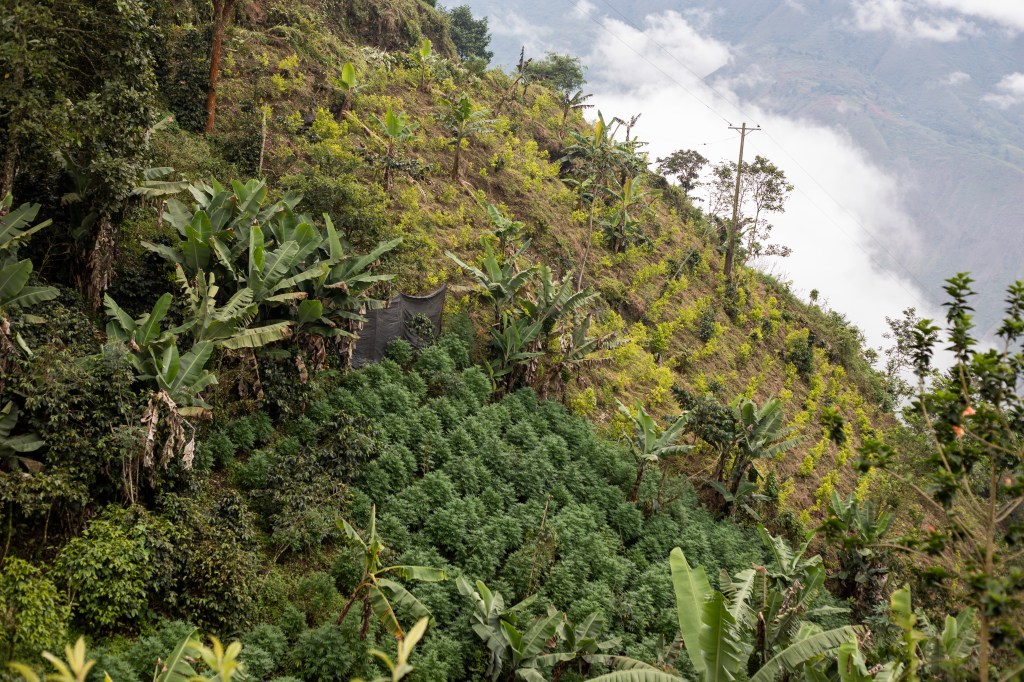 Alle spalle di Abel il sole tramonta e cala la notte sulle montagne circostanti. Le luci che si accendono fanno pensare ai lumi di un piccolo borgo, invece sono le coltivazioni di Toribio, anche conosciuta come la Ciudad Perdida, dove il business della marijuana è diventato endemico, si organizzano visite guidate nei campi e le piante vengono stimolate anche di notte con luci artificiali visibili da tutta la vallata. Gli affari fioriscono sotto gli occhi vigili della base dell’esercito che sorge a pochi chilometri. Le coltivazioni illegali di marijuana e coca foraggiano ormai da anni i diversi soggetti che si fronteggiano sul territorio. E si sono diffuse anche nei resguardos. Secondo Abel «il narcotraffico è stato uno dei problemi più difficili che abbiamo dovuto affrontare come organizzazione indigena». Le coltivazioni illegali sono una fonte di ingresso per le famiglie, al stesso tempo si sta «rompendo il tessuto sociale, oggi la gente ha più soldi e diventa individualista, incomincia a pensare a se stessa e non più come collettivo. Non partecipa alle riunioni e non va alle assemblee».
